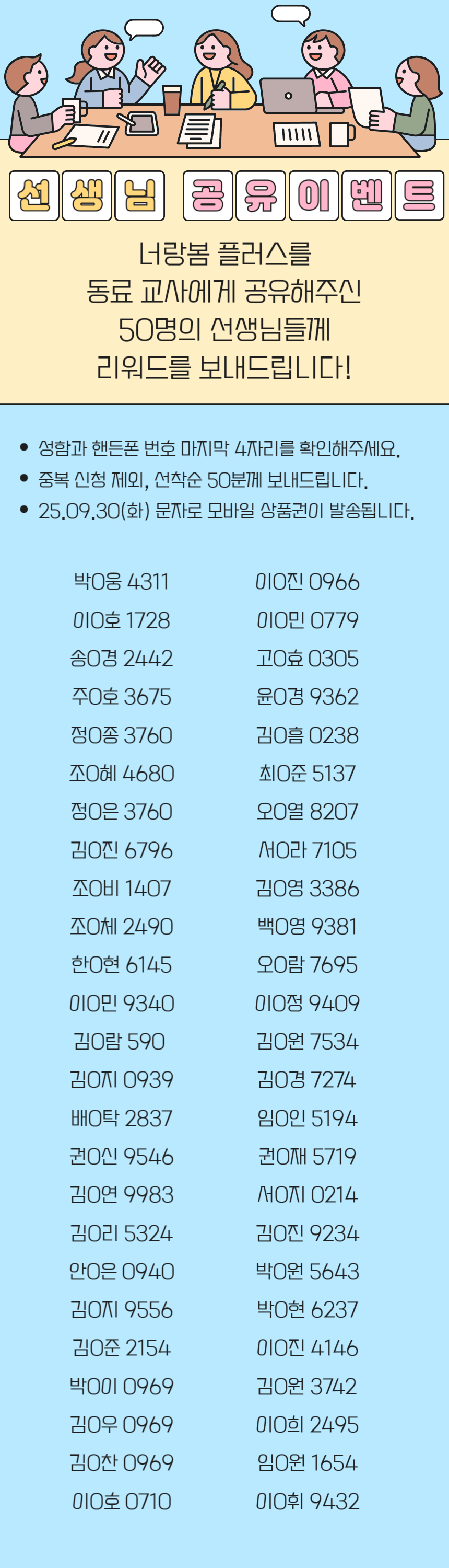 [너랑봄 플러스] 선생님 공유 이벤트(마감)