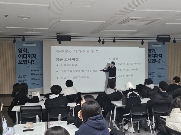 이번 국립어린이청소년도서관에서의 너랑봄 프로그램은 11월 29일(금)과 12월 13일(금) 오전 11시부터 11시 30분까지 진행됐다. 국립어린이청소년도서관을 이용하는 청소년 70여 명을 대상으로, 임규리 특수분장사의 직업 특강을 30분간 실시했다. 이에 앞서 특강과 연계한 영화 ‘원더’를 관람했다.